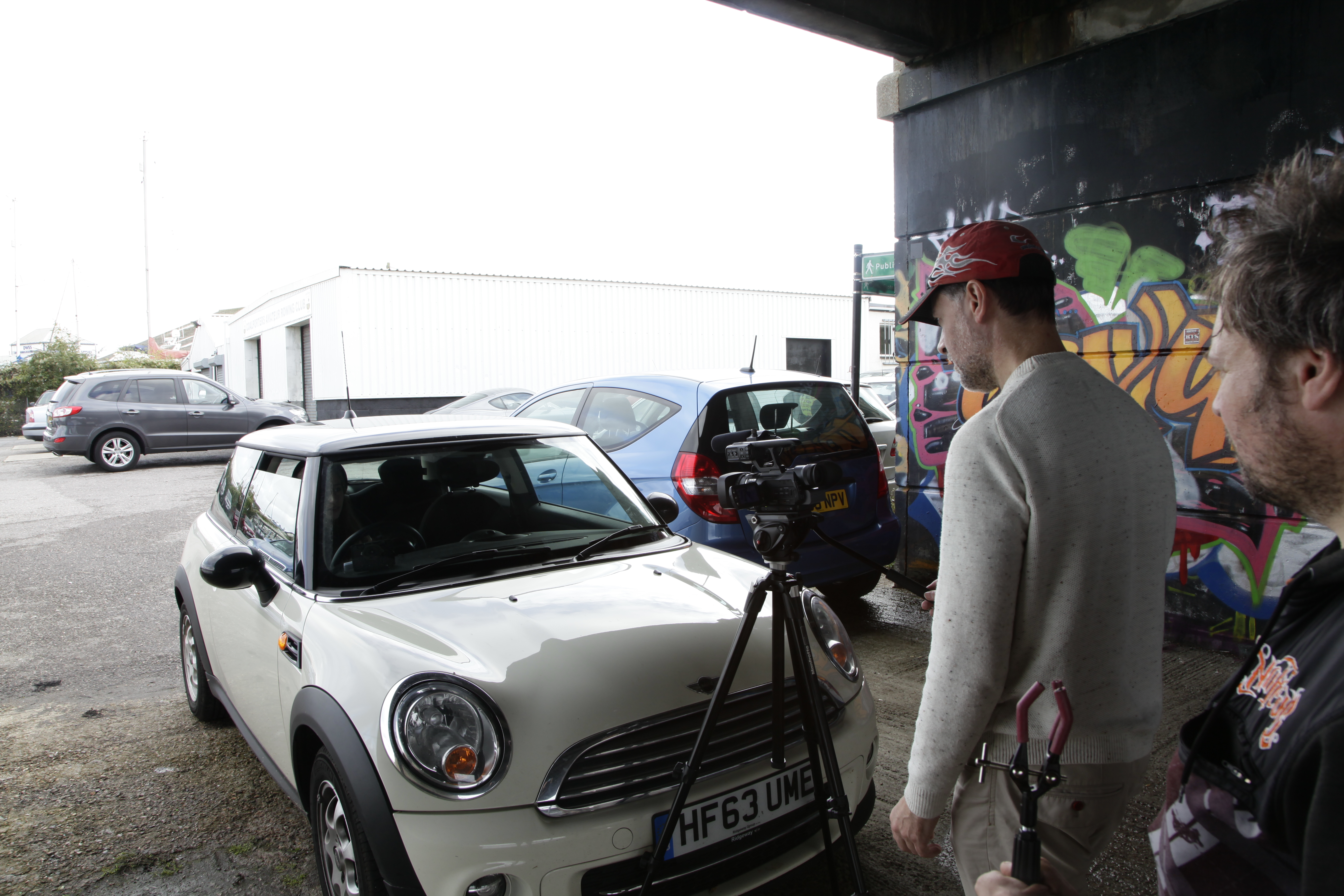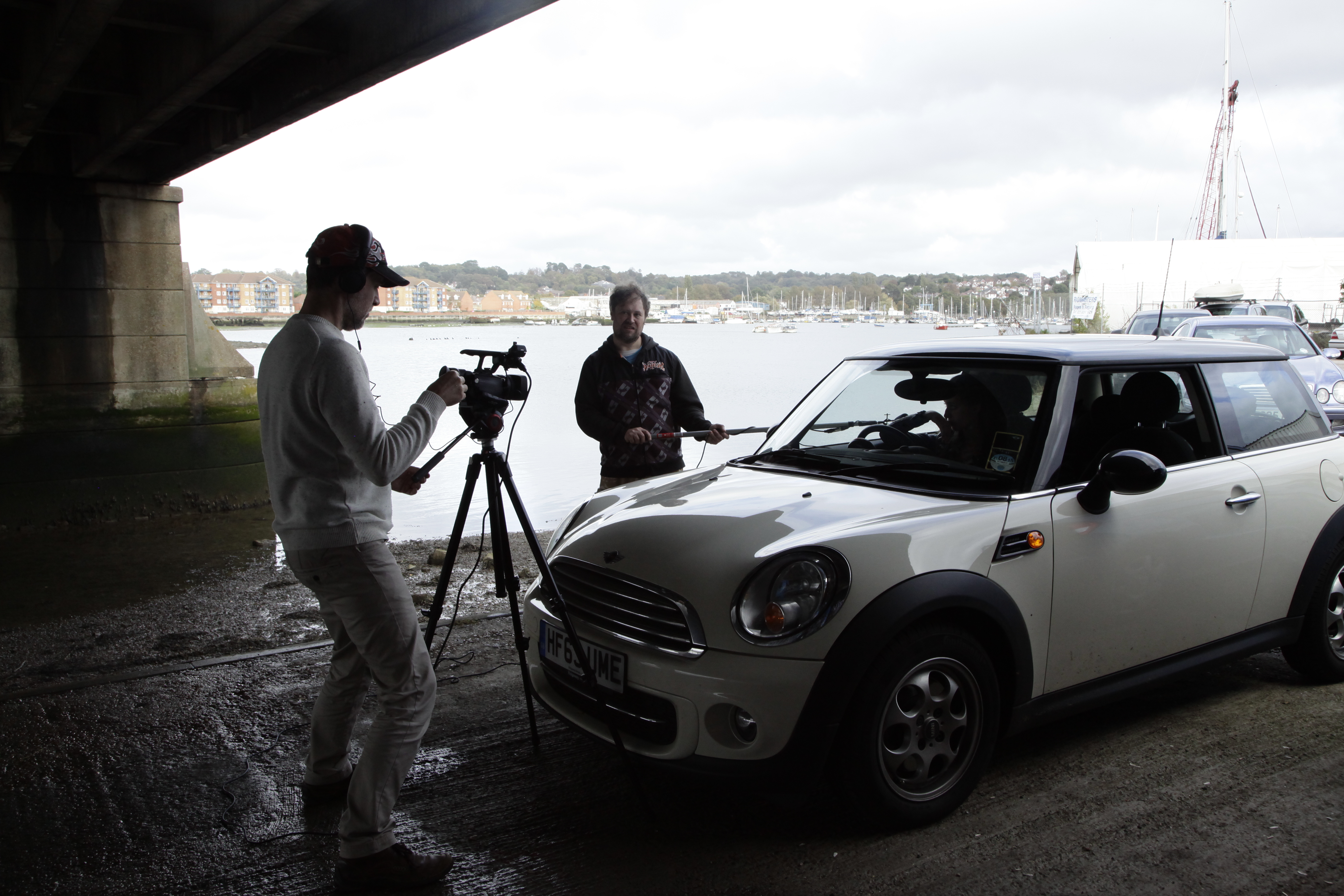 We chose two possible locations on the Friday evening, using Google Maps as our guide, and wrote a draft script into the early hours of Saturday morning. After no more than 3 hours of sleep, we made initial plans to get under way as early as possible on the Saturday, but by the time we got on location it was past midday. Unfortunately, we had not planned on a home match for Southampton FC which was due to kick off at 3pm, and which meant that there was too much vehicle movement around the location we had chosen to easily film. Consequently, we had to decamp to our second, alternative location, which was much better, although we still had to wait for football fans to clear the area, meaning we couldn’t get under way until 3pm. This was far later than planned, and meant that we only had three usable hours of daylight to film. Considering that it takes between one and two hours to produce one minute of film time, there was no way that we could complete any more than half of the film shoot on the Saturday. To try and save time, after the Saturday shoot, editing of the footage was done into the early hours of Sunday morning, when, following another sleep-deprived night, shooting recommenced. This was not ideal, as the weather conditions were not identical (it was brighter than Saturday), and the time of day was different. But we had little choice. Nevertheless, we managed to film the remainder of the film by midday, and then it was back home to edit as quickly as possible.